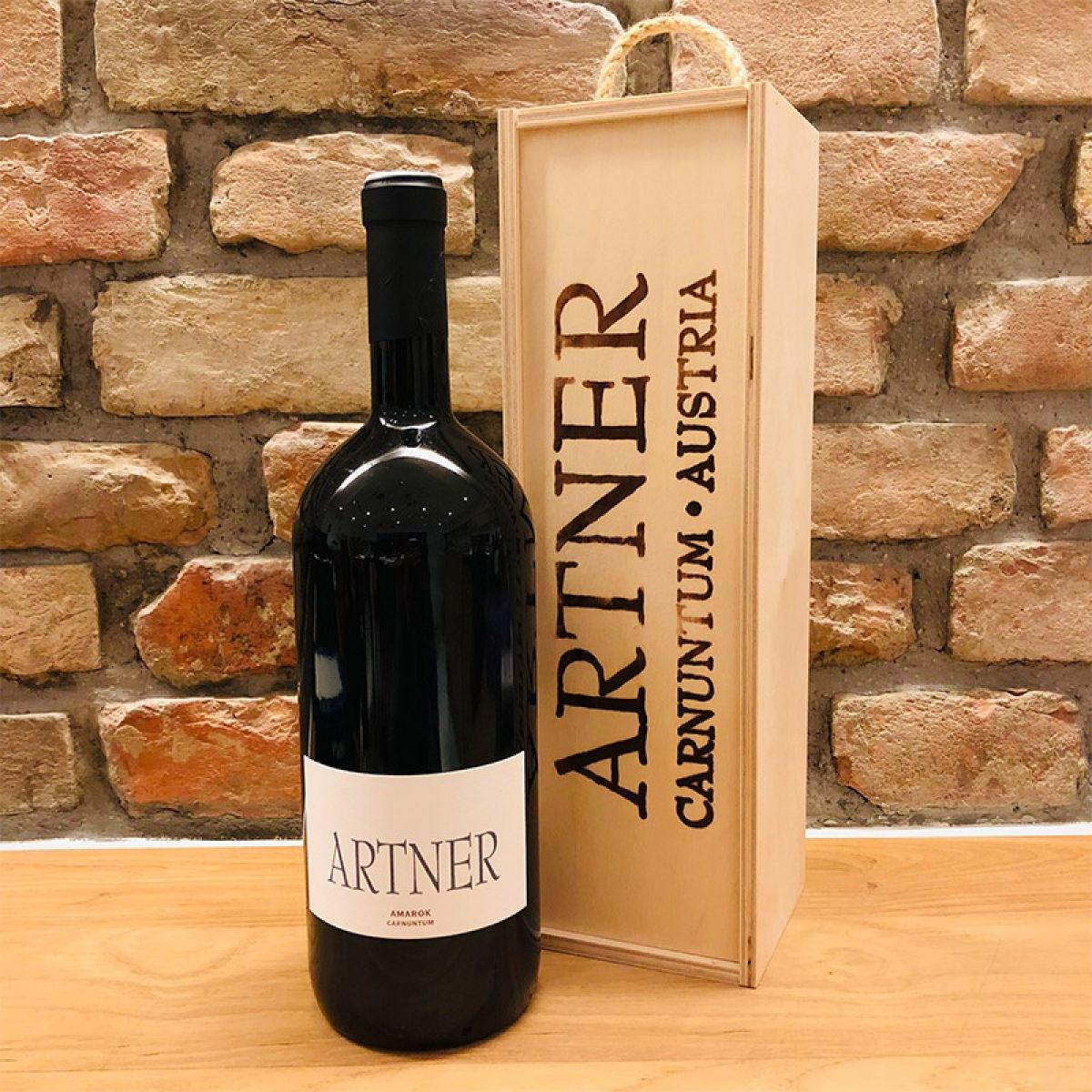 Für das passende Geschenk, bestellen Sie einfach die edle Holzkiste mit ARTNER Logo und Schubdeckel zur Magnumflasche dazu.